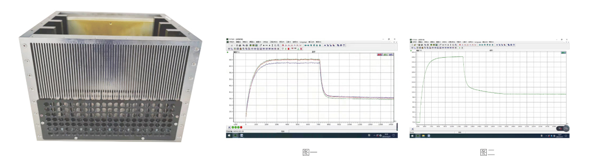 圖二: 環(huán)境溫度70℃,機箱內(nèi)部器件發(fā)熱功率70W滿功率運行,器件溫度升至136℃,打開壓電平面風(fēng)扇( 型號為YDFS-J12Z10 ),器件溫度降至97℃。