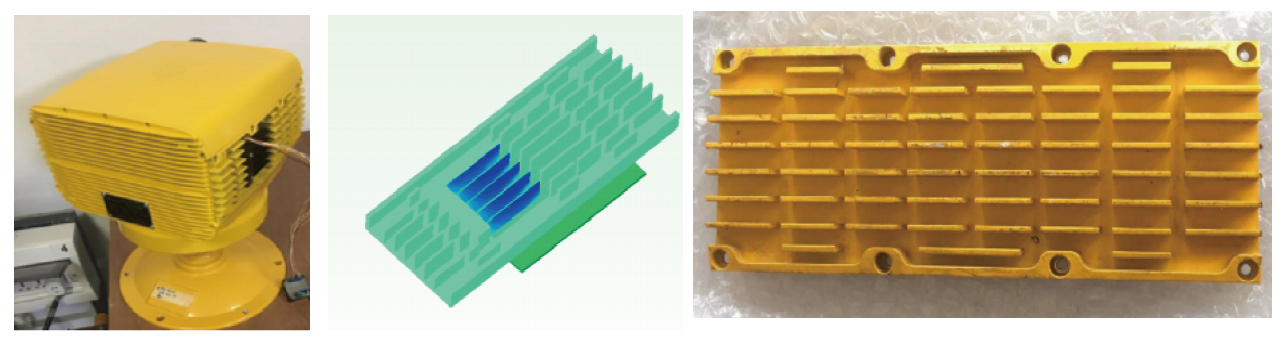 某機載設(shè)備采用中間獨立風(fēng)道的散熱方式, 熱功耗為215W,環(huán)溫65℃,芯片溫度116°C。 風(fēng)扇開啟后,芯片最高溫度降至97℃,溫升僅為32℃。