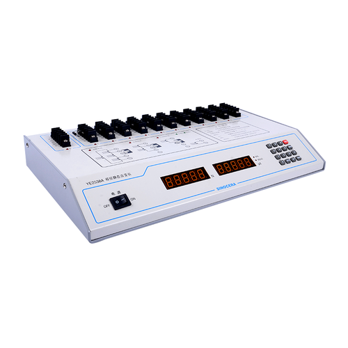 特點: ● 智能化管理 ● 電子開關切換,可靠性高 ● 通道、橋路指示燈指示 ● 雙通道顯示 ● 自動平衡 ● 兩路獨立補償點 ● 所有設置參數(shù)掉電保存 10點應變,1點力值,雙顯示